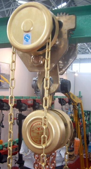 上圖是先將單軌小車固定于工字鋼上,再將防爆手拉葫蘆固定于單軌小車上,注意因為此特質手拉葫蘆是在特殊場合使用的,為了切實保證其使用安全性,請使用防爆單軌小車與其配合使用。