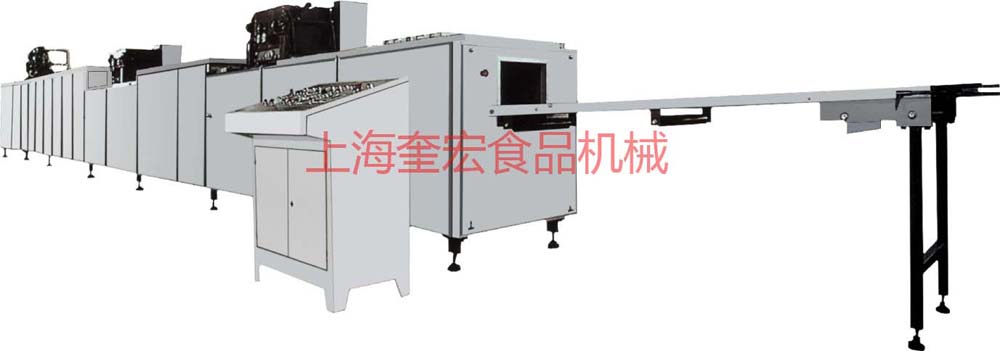 巧克力澆注成型機是一種用于生產巧克力產品的先進機器,機器集烘模,澆注,振蕩,刮平,翻模,冷卻,脫模和輸送的工序于一體,PLC全自動控制?缮a純巧克力,制殼夾心及上下左右雙色巧克力產品。雙頭或三頭可單獨或同時工作。 |