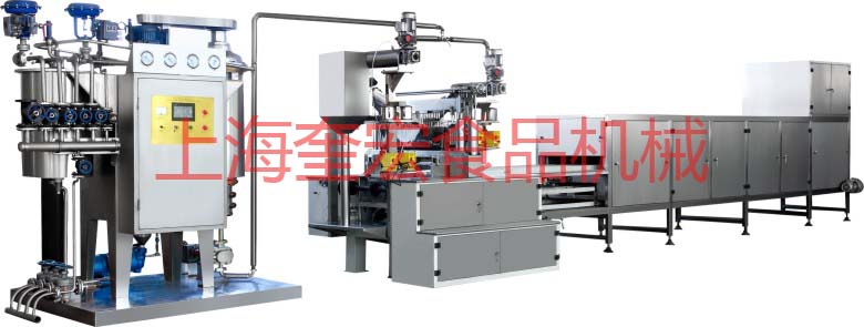 全自動PLC控制真空薄膜熬糖連續澆注成型生產線是目前國內先進的硬糖生產線設備。能生產單色,雙味雙色噴花,雙味雙色雙層,三味三色噴花以及水晶糖,夾心糖,條紋糖及思考奇等。